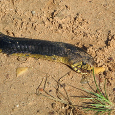 eine große hatten wir hier noch nie gesehen. Es handelte sich um die Art, die Gift ausspuckt, was zu Erblindung führen kann, wenn das Gift