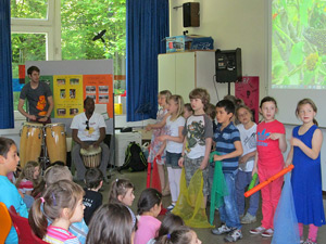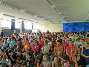 Verbindung noch vertiefen. Alle Grundschulklassen kamen an diesem Morgen im Musiksaal zusammen, eine bunte Schar.