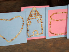 Woche gelernt und gebastelt hatten. Ich war besonders von den Bastelarbeiten fasziniert, mit Eierschalen, Muscheln und Krepppapier