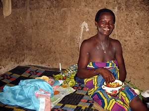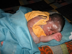 Als ich mit Kochen fertig bin, gehe ich schnell rüber, um ihr eine Schüssel Reis zu bringen und das Baby zu begutachten.