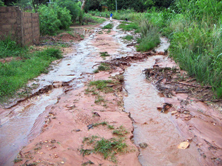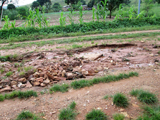 Alle Jahre wieder. Die heftigen Regenfälle schwemmen auf den unbefestigten Straßen (und das sind fast alle Straßen) das Erdreich weg, und zurück bleiben tiefe Furchen und riesige Schlaglöcher. Auch die Straße in unserem Stadtviertel ist da keine Ausnahme. Mit dem Zweirad ist es nicht so schlimm, da kann man ganz gut ausweichen, und meine übliche Strecke kann ich sowieso auswendig und die größten Löcher fast blind umfahren. Mit dem Auto ist es nicht ganz so einfach, da weicht man rechts aus und fällt links ins Loch. Direkt vor unserem Haus hat der Regen die Straße so dermaßen ausgewaschen, dass sich ein Kind in dem Loch verstecken könnte. Toussaint und die Jungs haben das dann provisorisch mit Steinen zugeschüttet, da es keinen Sinn macht, richtig zu reparieren, solange es noch regnet.