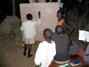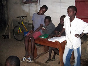 ist und vor dem Haus Schatten ist, einen Platz zum Lesen und Schreiben habe. Und abends können die Kinder, die noch lernen
