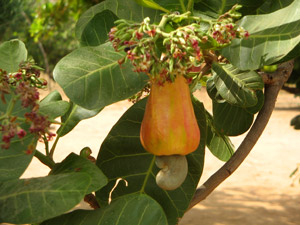 und sich gleich darauf in den Mund schieben kann. Die Cashewnuss wächst unterhalb einer Frucht, die Cashewapfel genannt wird, weil
