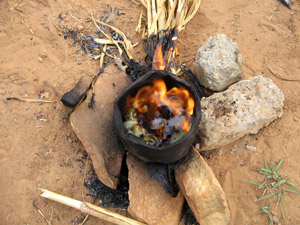ist. Dann kann man sie aufknacken und die Cashewnuss herausholen. Dabei muss man natürlich aufpassen, dass nicht gleich alles verbrennt,