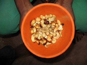 neben unserer Hütte die Maschinerie angeworfen und am Ende bekomme ich eine Handvoll frische Cashewnüsse.