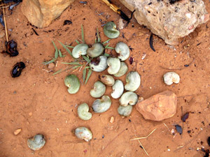 man die Nuss einfach so aufknacken würde, würde man sich die Hände verätzen. Man muss die Nüsse mitsamt der Schale im Feuer rösten