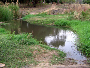 dem man beim besten Willen nicht ertrinken kann. Aber an einer Stelle haben die Wasserwerke ein kleines Stauwehr errichtet