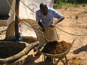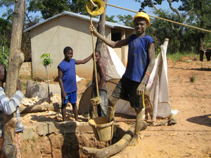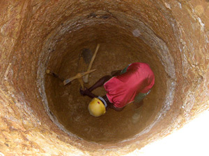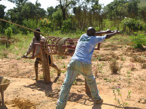 wieder los. Diesmal mit etwas besserem Werkzeug, Toussaint Bruder (ein professioneller Brunnenbauer) hatte einige Sachen hier