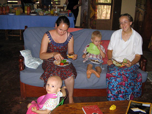 kleinen Sohn und drei junge Frauen einer französischen Freiwilligenorganisation eingeladen. Die Teamfrauen hatten alle etwas zu Essen mitgebracht, und so hatten wir