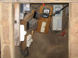 könnte. Darin und drum herum sind 10 Stromzähler aufgehängt, wobei aber manche wirklich nur am seidenen Faden hängen. Vom Zählerhäuschen gehen
