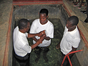Der gestrige Tag war nicht nur sehr, sehr lang, er wird auch in die Geschichte der Gemeinde Natitingou eingehen. Genaugenommen war es nämlich der Geburts-Tag der Gemeinde Natitingou. Bisher waren wir nur eine Gruppe, nun sind wir offiziell die 18. Adventgemeinde Benins. Bereits am Donnerstag- und Freitagabend saßen wir als Gemeindeglieder mit dem Vorsteher und dem Sekretär der Benin-Vereinigung sowie unserem Bezirkspastor zusammen, um die Gliederliste zu erstellen und die Verantwortlichen für die jeweiligen Bereiche in der Gemeinde zu benennen. Am Sabbat war dann unsere Gemeinde zum Bersten gefüllt. Die 10 zusätzlichen Bänke, die ich vom Kinderheim hergekarrt hatte, waren alle besetzt. Viele Geschwister aus umliegenden Gruppen waren gekommen, und viele Freunde waren der Einladung zu diesem besonderen Gottesdienst gefolgt. Der Morgen begann wie gewohnt mit der Bibelschule. Nach der Pause begann dann die Zeremonie der offiziellen Gemeindegründung. Dabei wurden auch die beiden Gemeindeältesten und die Diakone eingesegnet. Außerdem wurde für alle Verantwortlichen der verschiedenen Bereiche ein Segensgebet gesprochen. Im Anschluss daran hielt die Leiterin des Bereiches „Kinder“ bei der Vereinigung eine sehr gute Predigt. Doch damit war der Vormittag noch nicht zu Ende, denn jetzt gab es noch eine Taufe mit 9 Täuflingen. Zwei der Täuflinge, ein Ehepaar, waren aus dem Neulandprojekt Toucountouna, 25 km nördlich von Natitingou, zwei aus der Gemeinde Natitingou, die anderen aus umliegenden Gruppen. Ich habe mich besonders gefreut, dass zwei Mädchen „meiner“ Taufklasse getauft wurden.