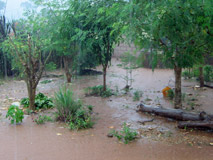 Regen, Regen, jeden Tag Regen. Letzten Donnerstag hatten wir sogar den ganzen Tag Regen, das ist selten hier. Normalerweise gießt es für +/- eine Stunde (und wenn ich sage gießen, dann meine ich gießen!) und dann ist es vorbei. Während des Regens hört man nichts außer dem ohrenbetäubenden Trommeln auf dem Wellblechdach. Wenn der Regen dann aufgehört hat hört man, wie draußen das Wasser den Berg runterrauscht und dann den Weg Richtung Bach (200 m unterhalb unseres Hauses) nimmt. Die Kompostgrube hinterm Haus ist bis zum Anschlag mit Wasser gefüllt, der Hof vorne ist eine einzige Wasserfläche. Jeden Morgen beginnt der Hunderspaziergang mit der spannenden Frage: Kommen wir über den Bach oder nicht? Sind noch genug Steine oberhalb der Wasseroberfläche für mich zum Rüberhüpfen? Die Hunde können ja ruhig ins Wasser fallen, aber ich hab dazu weniger Lust. Meine Schuhe sind nach dem morgendlichen Spaziergang dann so verdreckt, dass sie gleich auf der Terrasse bleiben müssen und dort auf ihren nächsten Einsatz warten. Am nächsten Morgen muss ich dann aber erst kontrollieren, bevor ich den Fuß reinstecke, da immer mal wieder ein Frosch drin übernachtet hat! Wir sind dankbar für den Regen, denn er entscheidet darüber, wie gut die Ernte ausfallen wird.